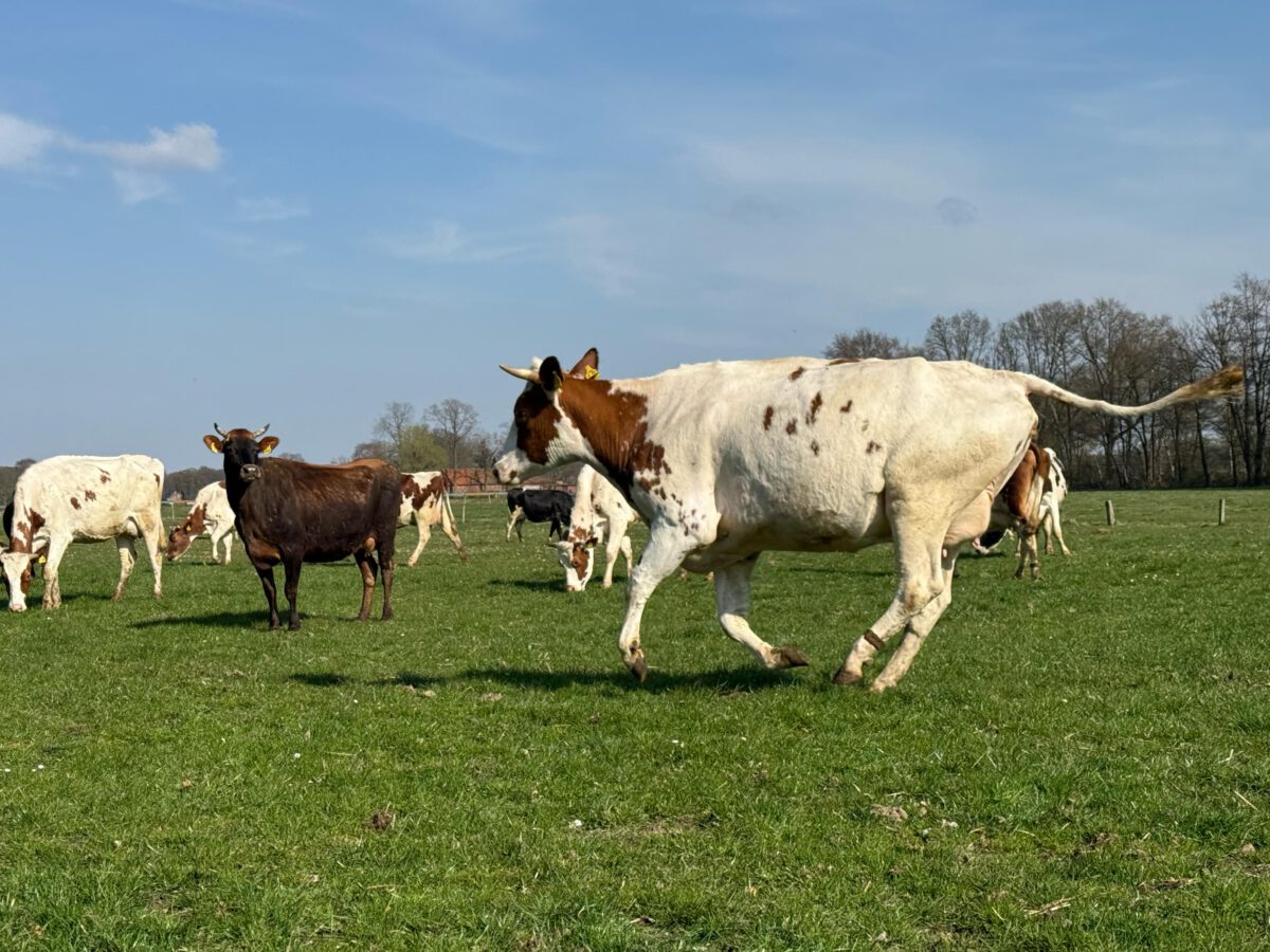 Die wunderbar sonnigen letzten Februar Tage, locken nicht nur viele Menschen, sondern auch unsere Kühe nach draußen! Natürlich ist noch kein Gras zum Fressen auf den Wiesen gewachsen, doch den Kühe tut es so gut, sich einmal von Herzen auszutoben. Die Sonne ist gut für den Stoffwechsel, die Gesundheit und wertvolle Inhaltsstoffe in der Milch!